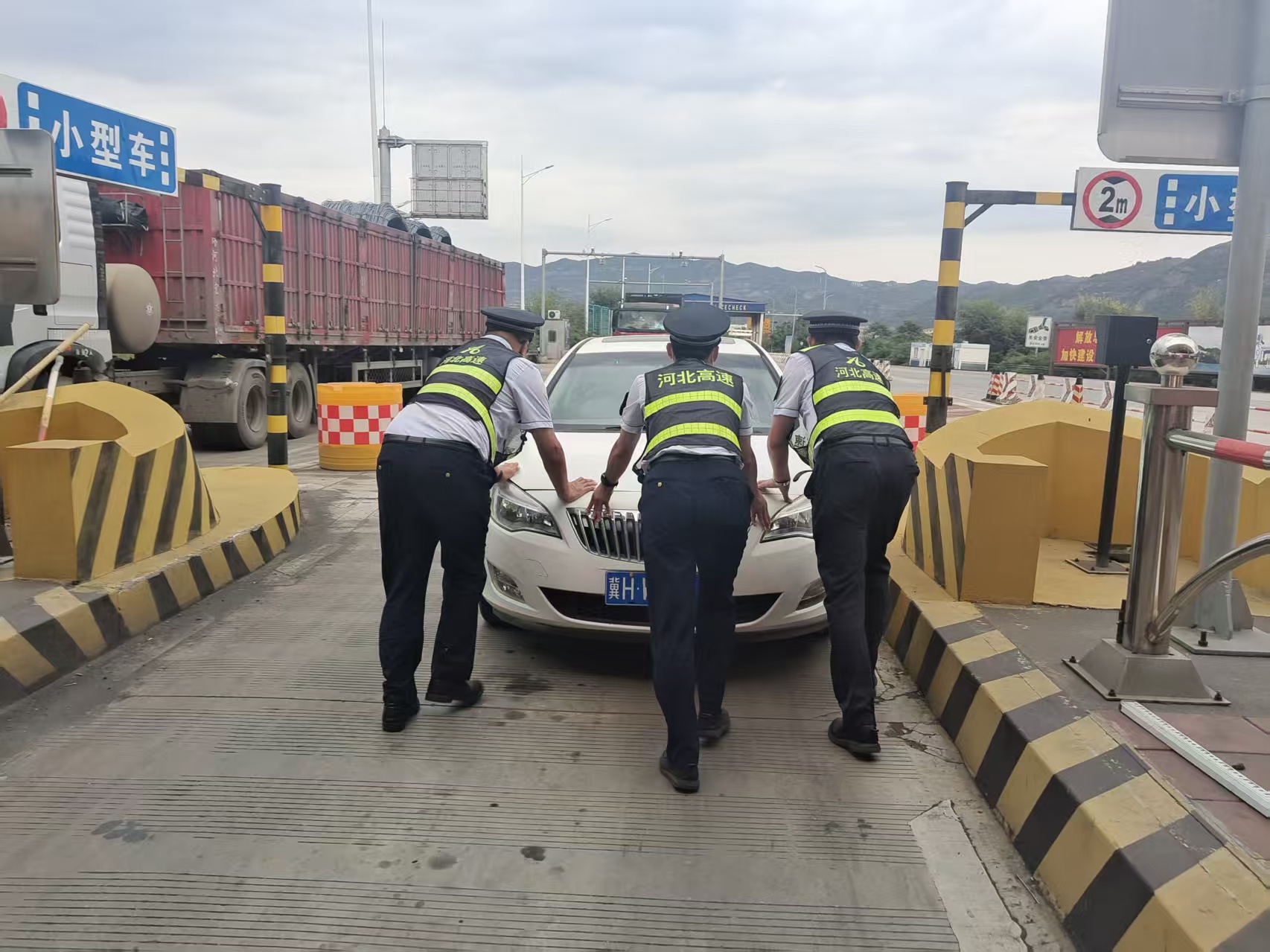 危急时刻,滦河收费站当班人员迅速反应,立即上前查看情况。在确认车辆因故障无法行驶后,工作人员迅速分工协作:一部分人在车辆后方疏导交通,避免拥堵;其他人合力将故障车推至收费广场安全区域,及时恢复车道通行。随后,当班班长主动向司机说明周边修理厂位置,协助其联系检修,确保行车安全。整个过程配合默契、服务周到,有效缓解了车主的焦虑情绪。