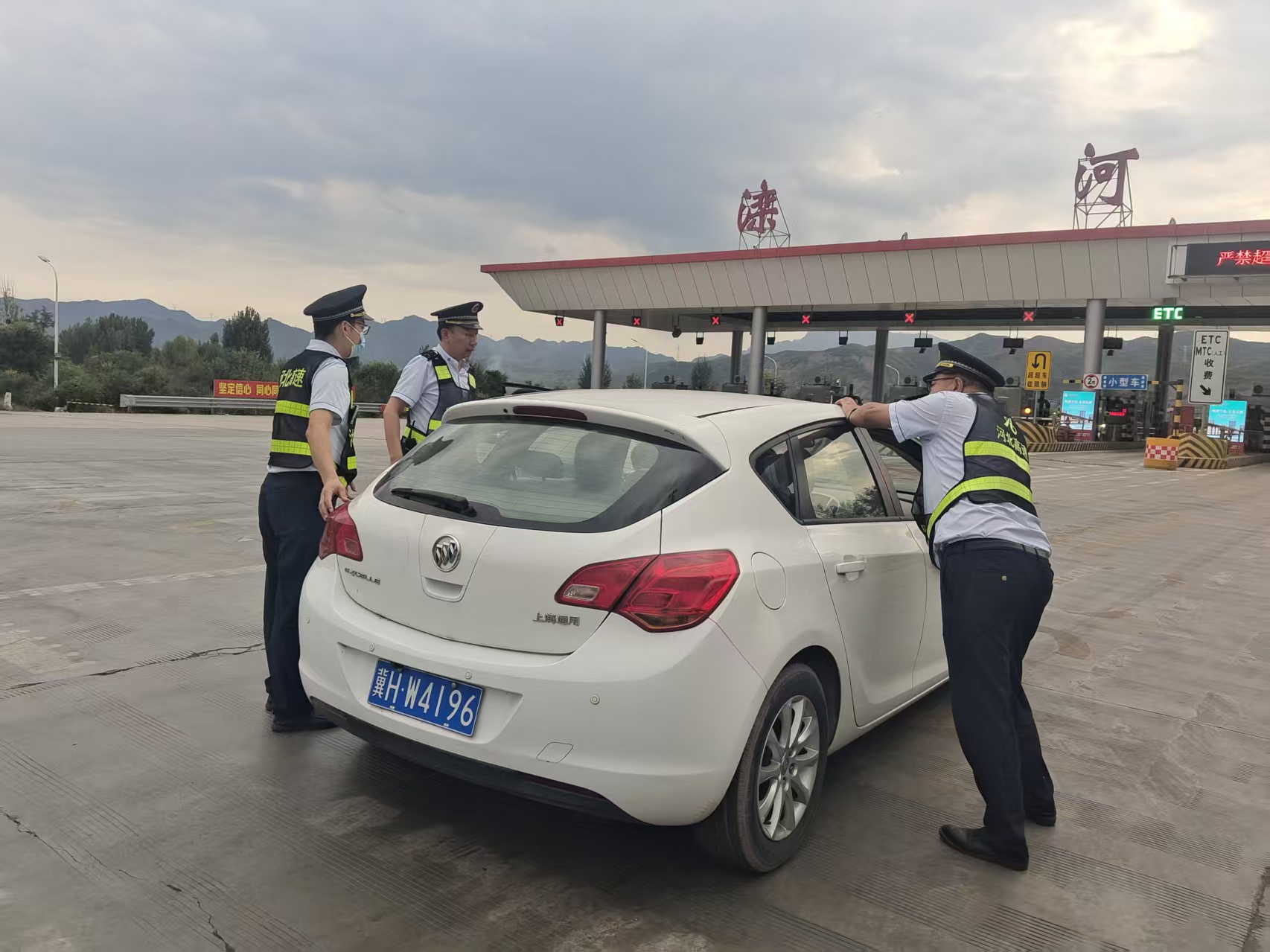 9月21日下午,一辆白色别克轿车行驶至滦河收费站时突发故障,停滞在收费车道内。面对车辆抛锚,司机一时手足无措。