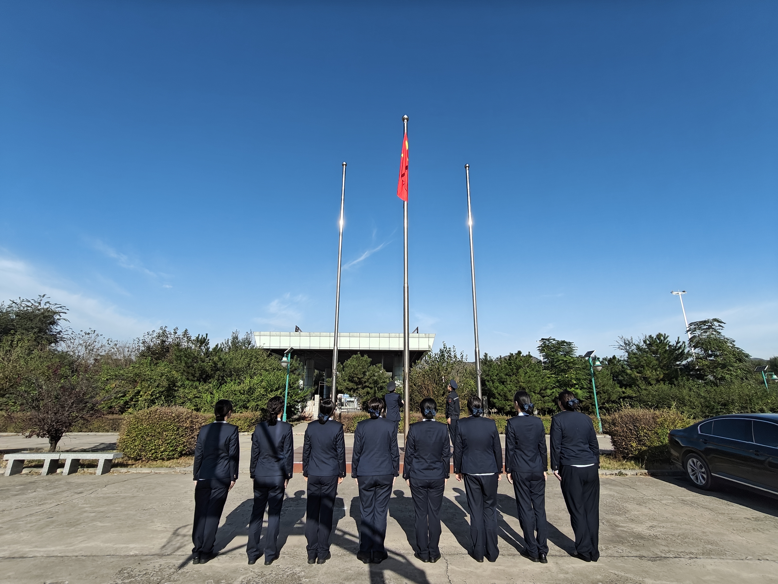当激昂的《义勇军进行曲》骤然响起,鲜艳的五星红旗在护旗手振臂扬旗的瞬间,全体职工庄严肃立,面向国旗行注目礼,高唱国歌,表达着对祖国的无限热爱与崇高敬意。