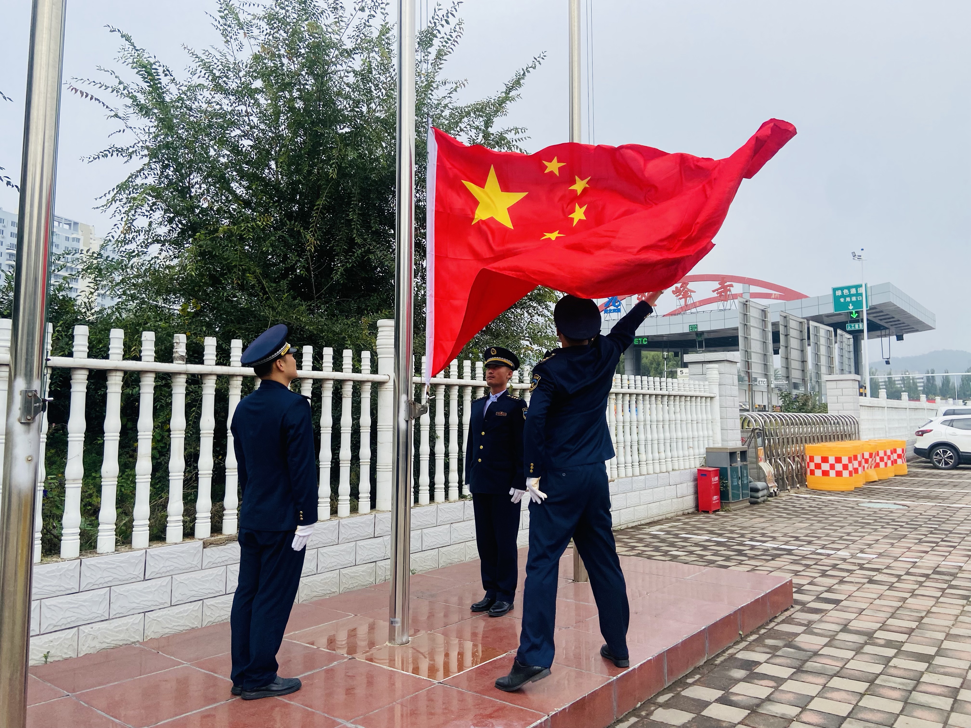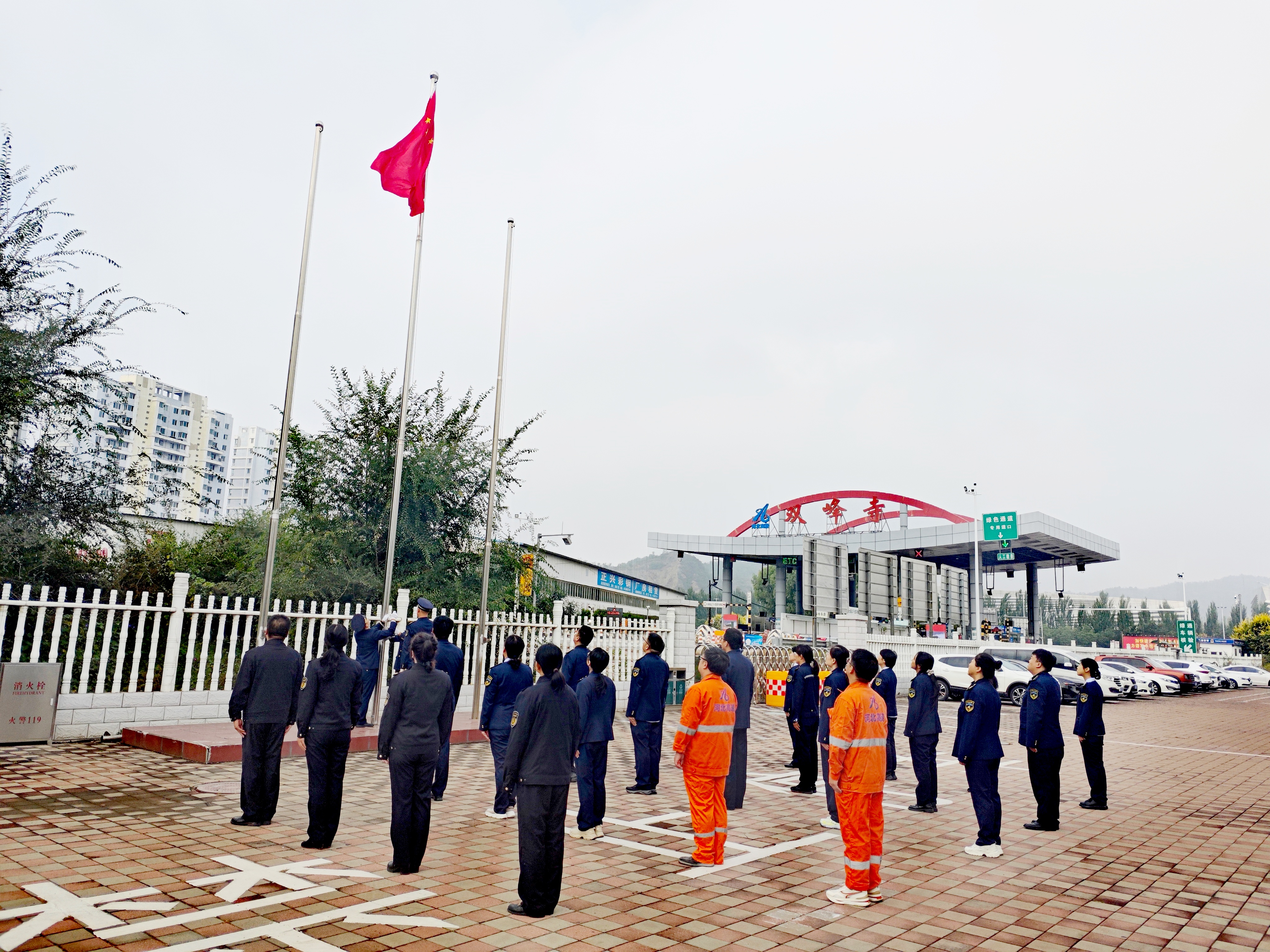 9月30日清晨,承德分公司双峰寺收费站联合双峰寺隧道管理站、平泉保通保畅应急大队和高速路政双峰寺大队等部门,共同举行庄严的升国旗仪式,以赤诚之心迎接国庆佳节,凝聚保通保畅的奋进力量。