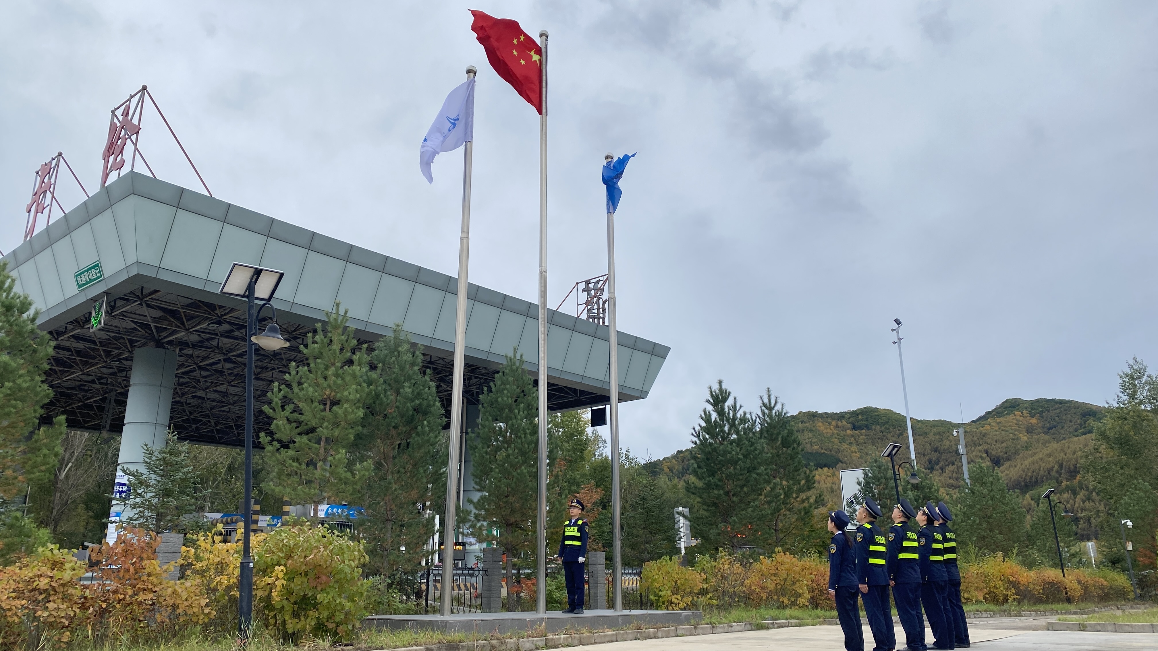 国旗飘扬,凝聚爱国之心。10月1日清晨,收费站举行了庄严的升旗仪式。全体职工身着整齐工装,精神饱满,肃立行注目礼,注视着鲜艳的五星红旗在晨曦中冉冉升起,迎风飘扬。这一刻,对祖国的无限热爱与崇敬之情在每个人心中激荡,更加坚定了大家立足岗位、服务人民、奉献交通事业的决心。