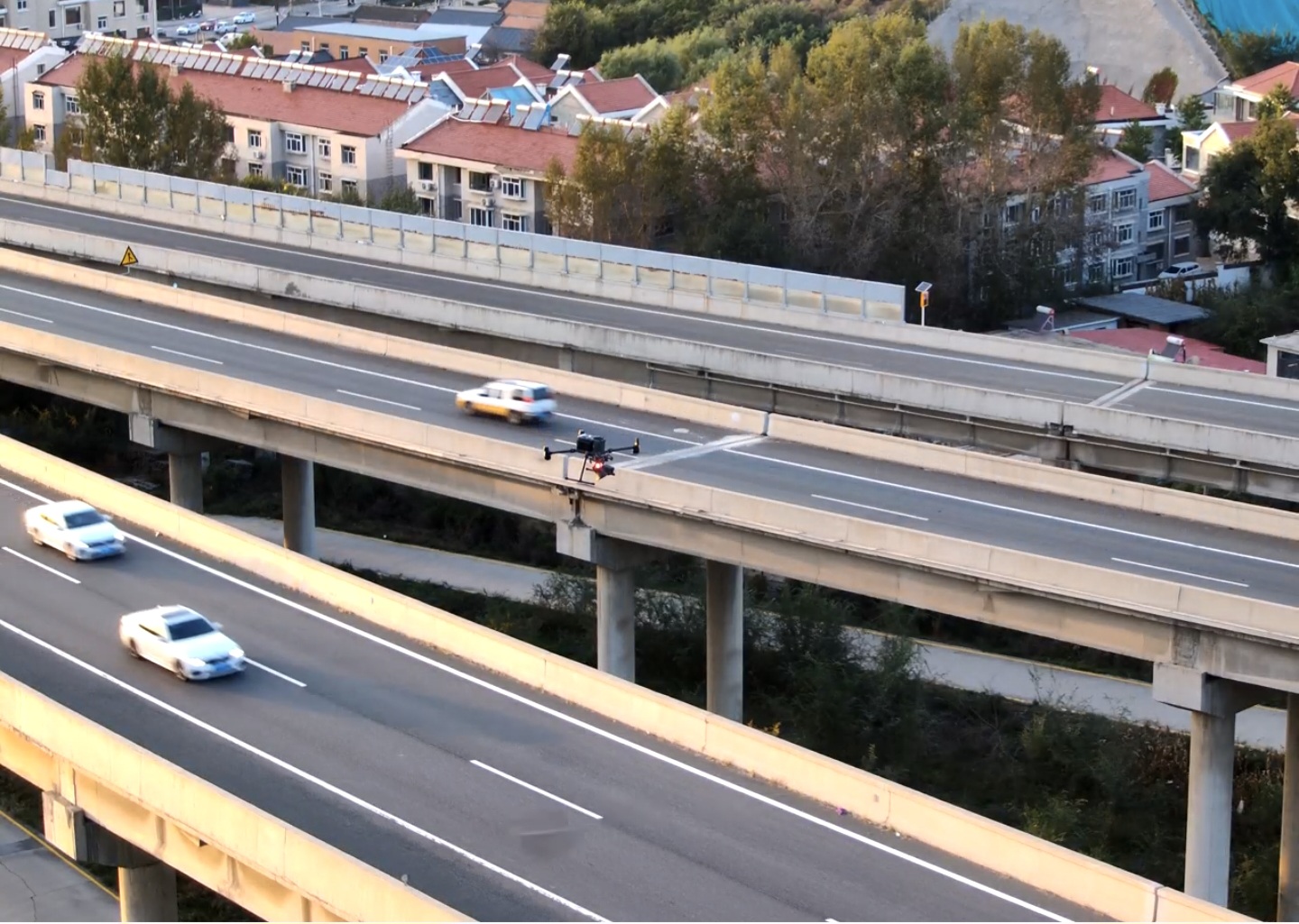 科技赋能,提升保畅效能。指挥调度中心在国庆高峰时段启用无人机巡查预警,搭载高清摄像头的无人机对易拥堵路段进行全方位覆盖监测,同步开展空中喊话提醒。发现车流瓶颈或突发状况,现场画面即刻回传监控大厅,为决策提供直观依据,较传统处置方式效率提升40%以上。同时,通过可变情报板动态更新路况、拥堵预警及绕行建议,引导车流科学分流。