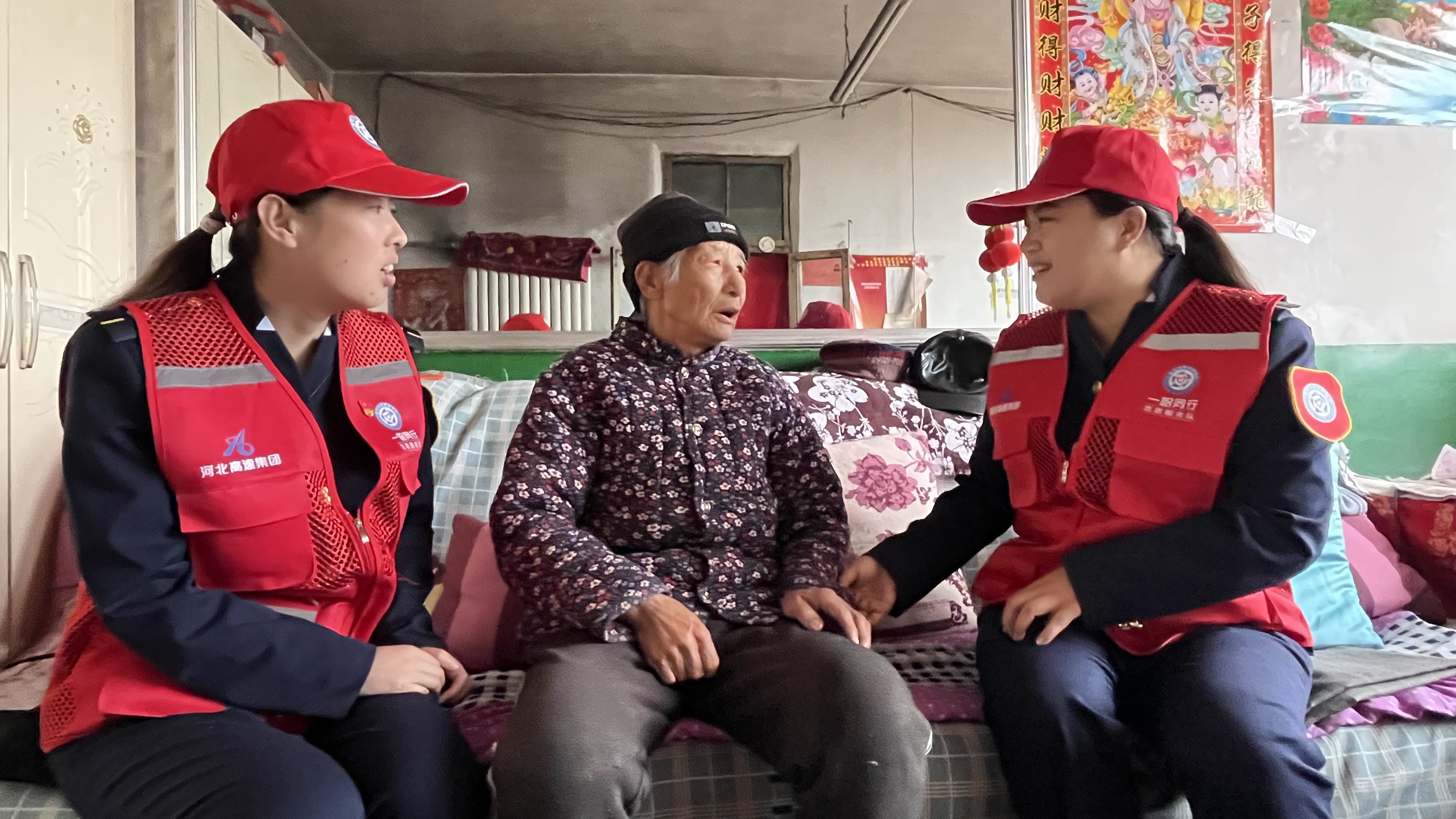 活动中,志愿者们带着米、面、油等生活物资,来到平泉市南五十家子镇会洲城村,探望张瑞枝和杨小兰两位老人,为她们送上节日祝福。