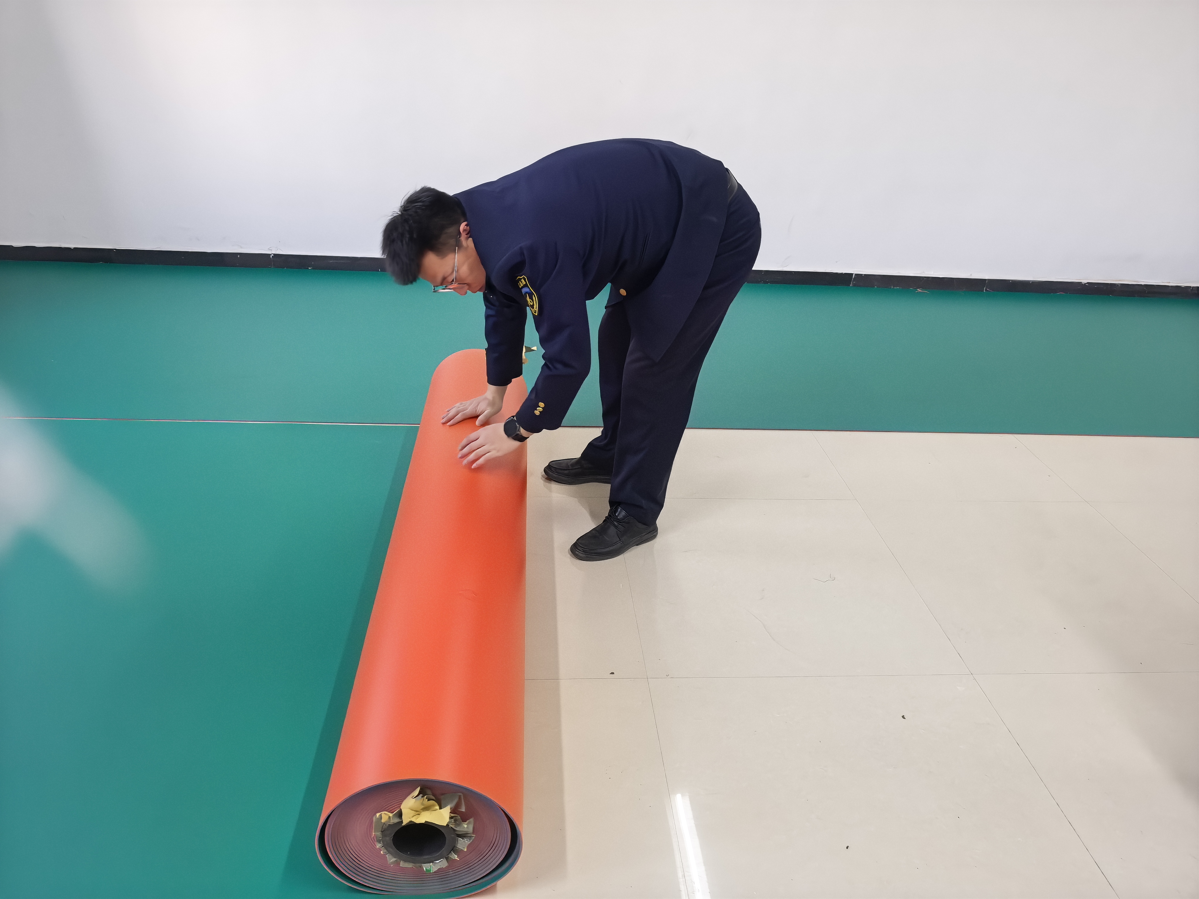 改造期间,站内职工积极参与、主动协作。大家有序完成旧地板清理、地面除尘、基准线弹设等前期准备工作,随后严格按照施工规范,进行胶粘剂涂抹、地胶铺设、边角压实等工序。全体人员紧密配合,仅用一天时间便高效完成全部改造,活动室地面焕然一新,整体环境明显改善。