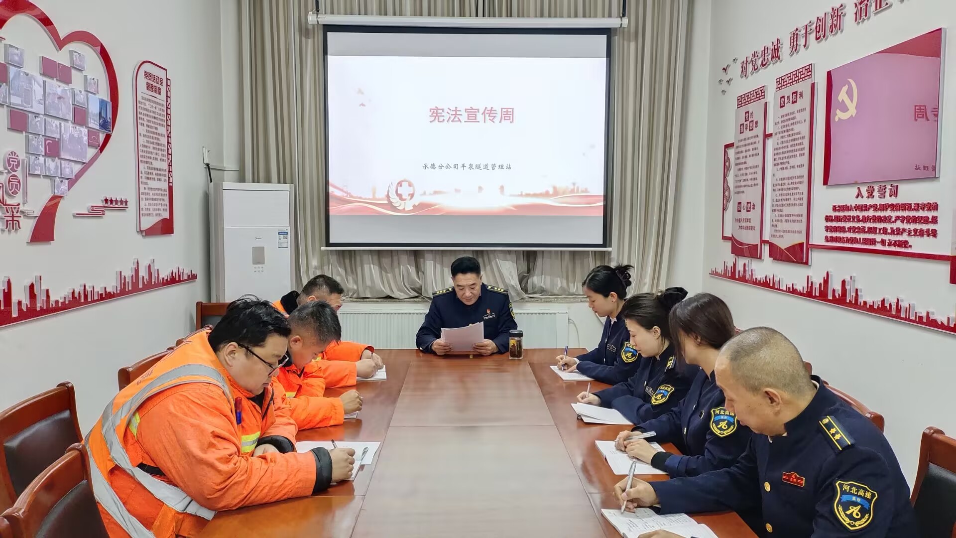 为迎接第十二个国家宪法日及第八个“宪法宣传周”,平泉隧道管理站围绕“弘扬宪法精神,增强法治意识”主题,于近日组织开展了形式多样的宪法宣传系列活动,引导全体职工自觉尊法学法守法用法。
