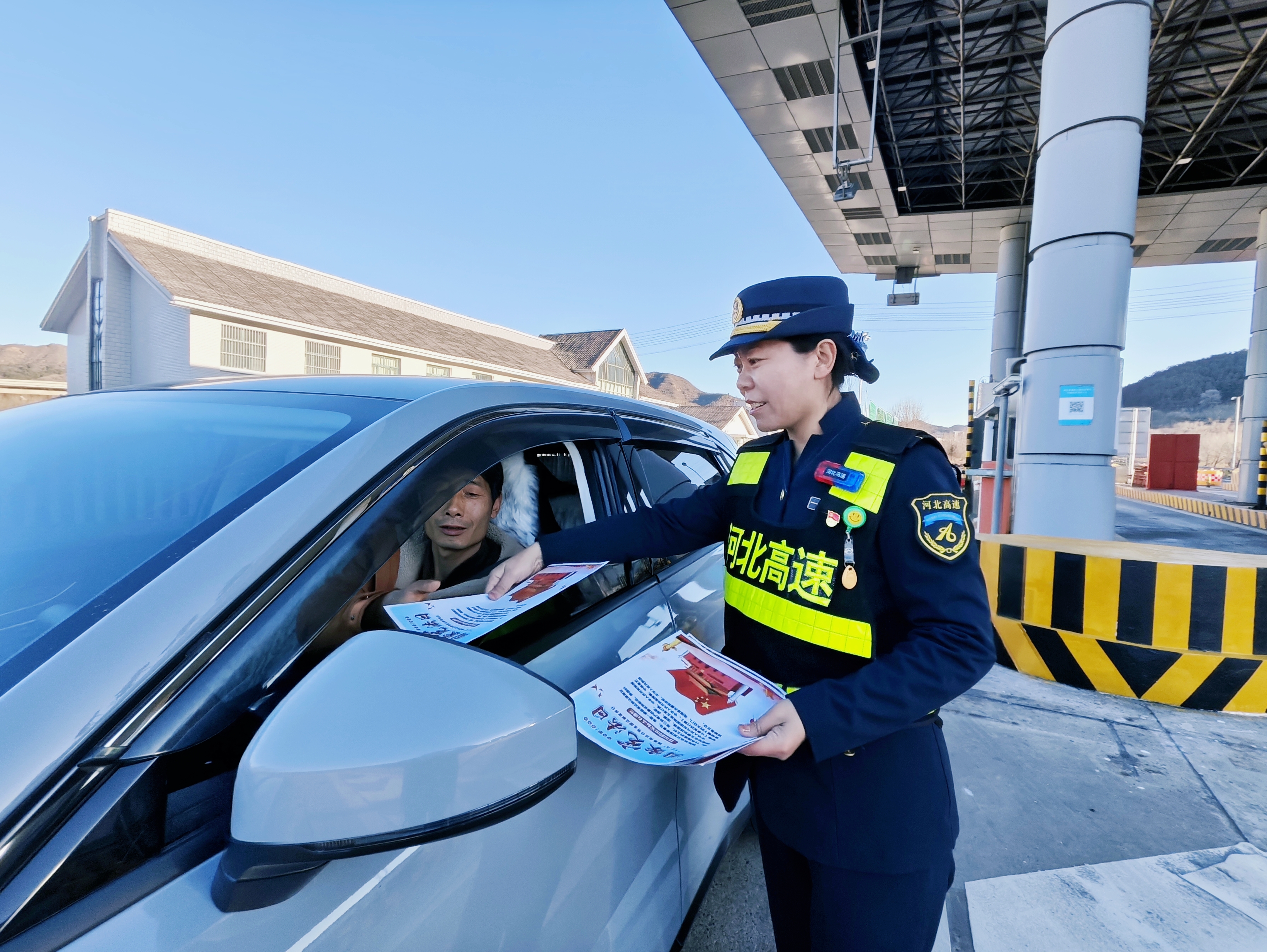 活动当天,党员志愿者们佩戴党员徽章亮明身份,在收费广场向过往司乘人员发放宪法知识宣传单,普及宪法核心要旨。宣传单聚焦公民基本权利与义务、交通安全法规相关法律依据等重点,以图文并茂、通俗易懂的方式解读法律条文,方便司乘快速掌握出行相关法律知识。党员们化身“普法宣传员”,发放传单时耐心解答通行费征收标准、ETC安装、应急处置等热点问题,司乘人员纷纷表示,宣传单内容实用、讲解清晰,既学到了法律知识,又解决了出行疑惑。