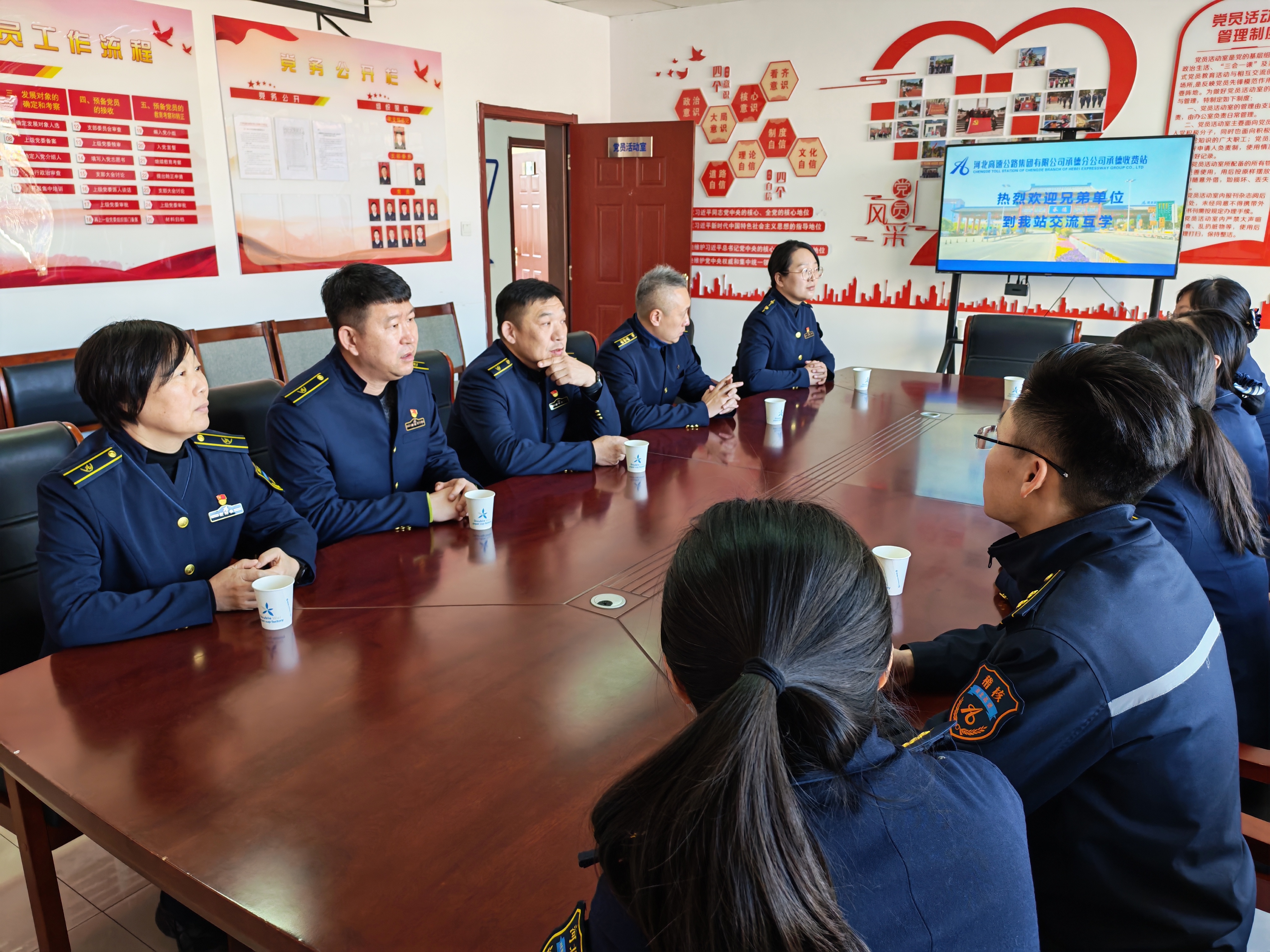 为深入推进基层党支部标准化、规范化建设,全面提升基层党建工作质效,12月17日,承德分公司围场南收费站、围场北收费站、蓝旗卡伦收费站、围场应急大队、围场南隧道管理站各党支部组织党员骨干一行,赴承德收费站党支部开展“对标榜样强党建 参观见学促提升”主题交流活动。