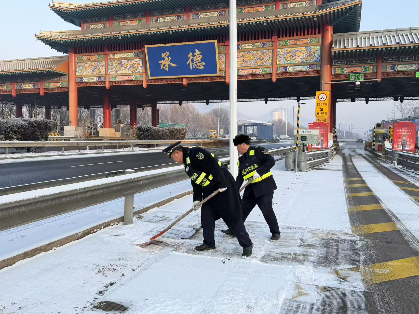 12月23日凌晨,承德地区迎来新一轮强降雪。面对恶劣天气,承德收费站立即启动除雪保畅应急预案,全体干部职工闻雪而动、迅速集结,围绕“保安全、保畅通、保服务”目标,全力投入到除雪保畅工作中,切实筑牢道路通行安全防线。