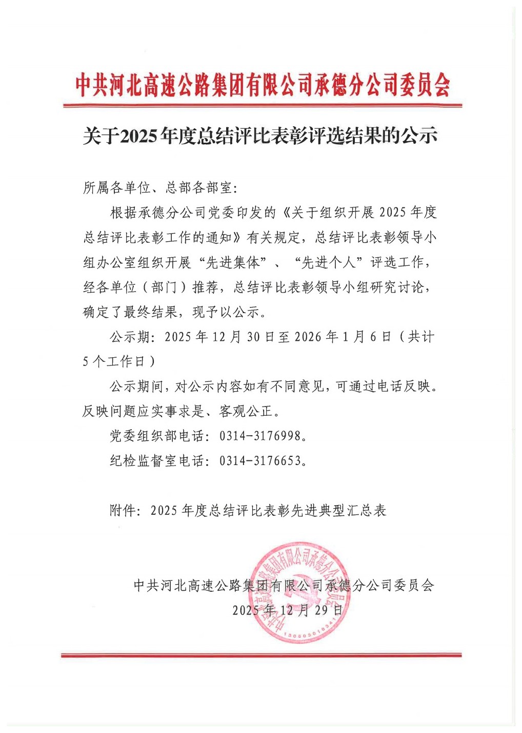 关于2025年度总结评比表彰先进典型评选结果的公示