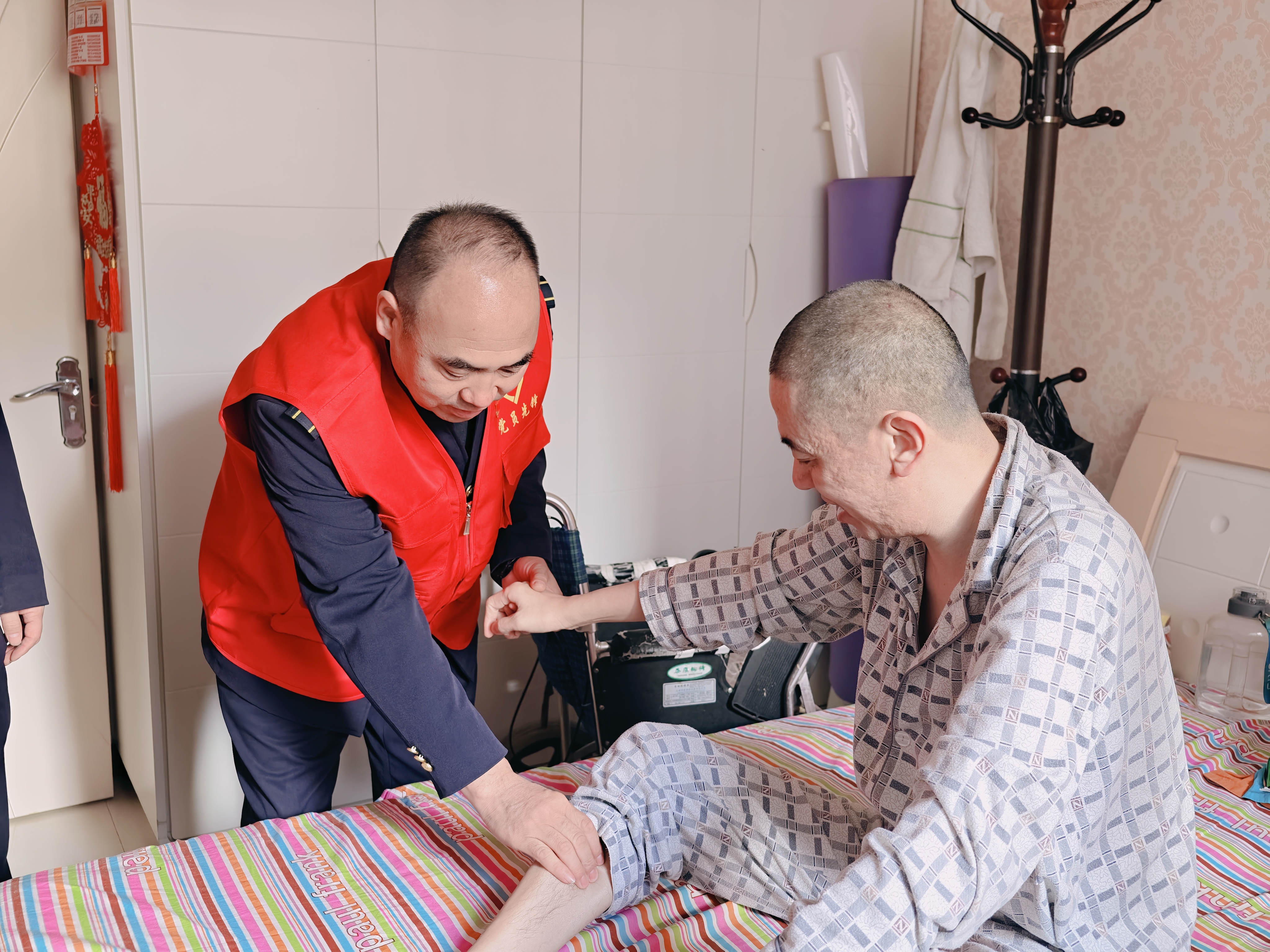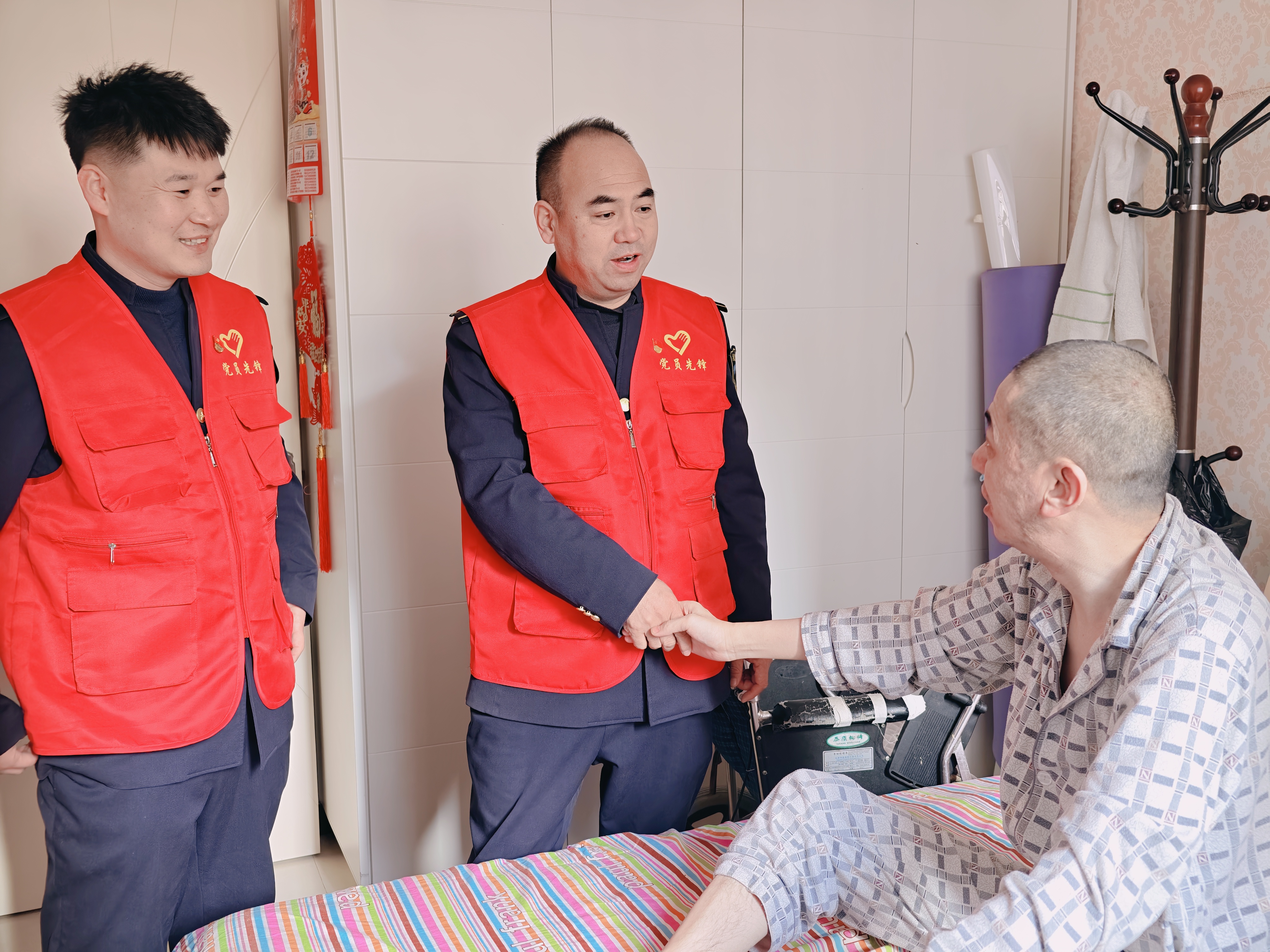 活动中,支部书记一行人拿着牛奶、水果等慰问品,来到陈超家中,与陈超及其家属亲切交谈,详细了解他的身体恢复情况、治疗进展及家庭生活现状,耐心倾听他们在生活中遇到的实际困难与内心诉求。交谈中,党支部书记握着陈超的手亲切说道:“组织始终惦记着你,有任何困难都要及时提出来,我们一定会尽最大努力提供帮助。现在最重要的是安心养病,保持积极乐观的心态,争取早日康复。”真挚的话语让陈超及其家人深受感动,直言这份冬日暖意,让他们在新春来临前倍感安心与幸福。
