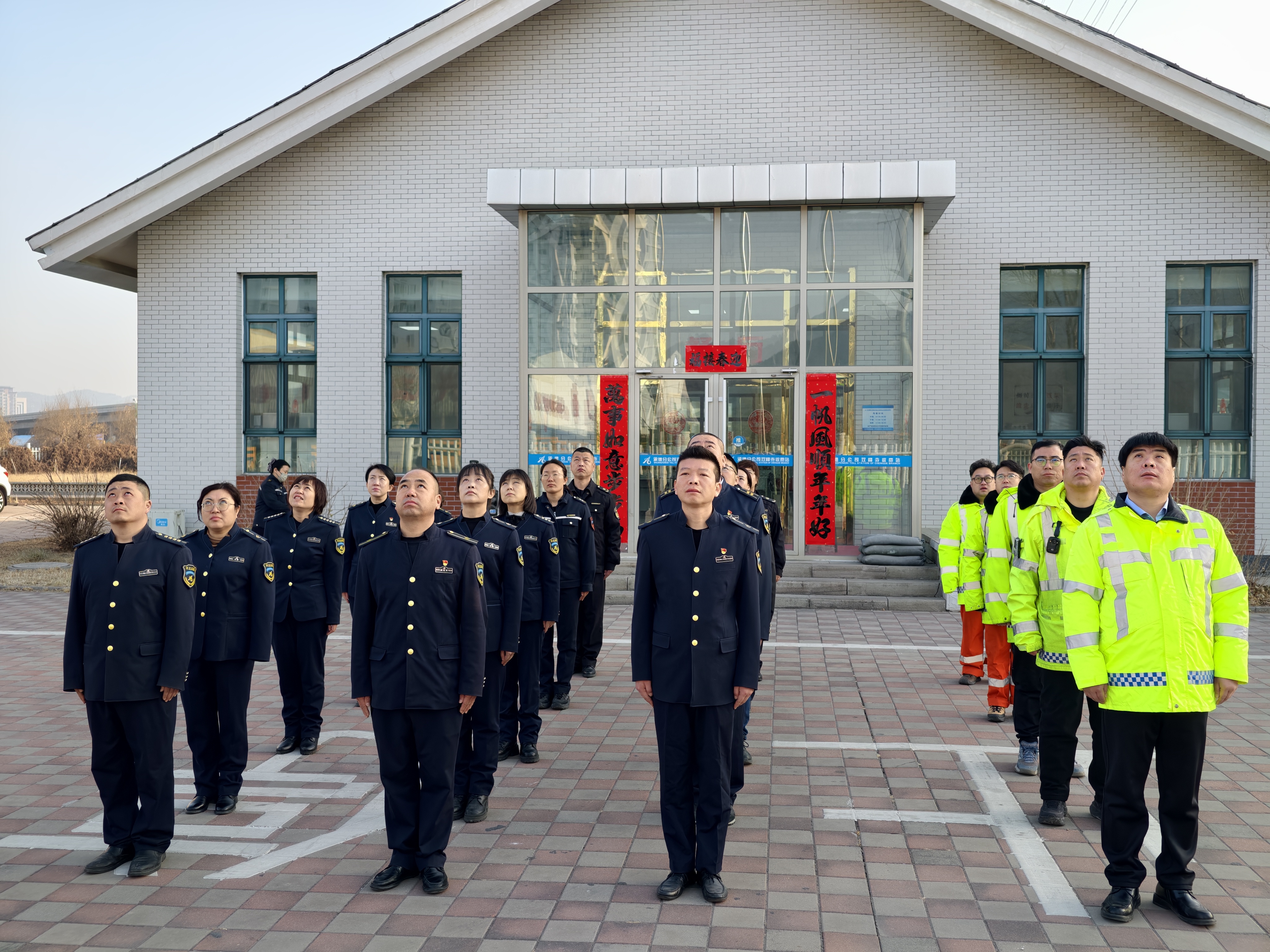 清晨,伴随着雄壮嘹亮的《义勇军进行曲》,五星红旗冉冉升起、迎风飘扬。全体在岗人员身着整齐制服,精神抖擞、列队肃立,向国旗行注目礼,满怀对祖国的无限崇敬与热爱。鲜艳的五星红旗承载着民族希望,凝聚着奋进力量。庄严的仪式不仅是一次爱国主义教育,更是一次思想的淬炼与精神的洗礼。职工们神情庄重,在仪式中感悟初心使命、厚植爱国情怀,进一步坚定理想信念、强化责任担当。大家共同祝愿伟大祖国繁荣昌盛、国泰民安,祝愿人民群众新春吉祥、阖家幸福、出行平安顺遂。