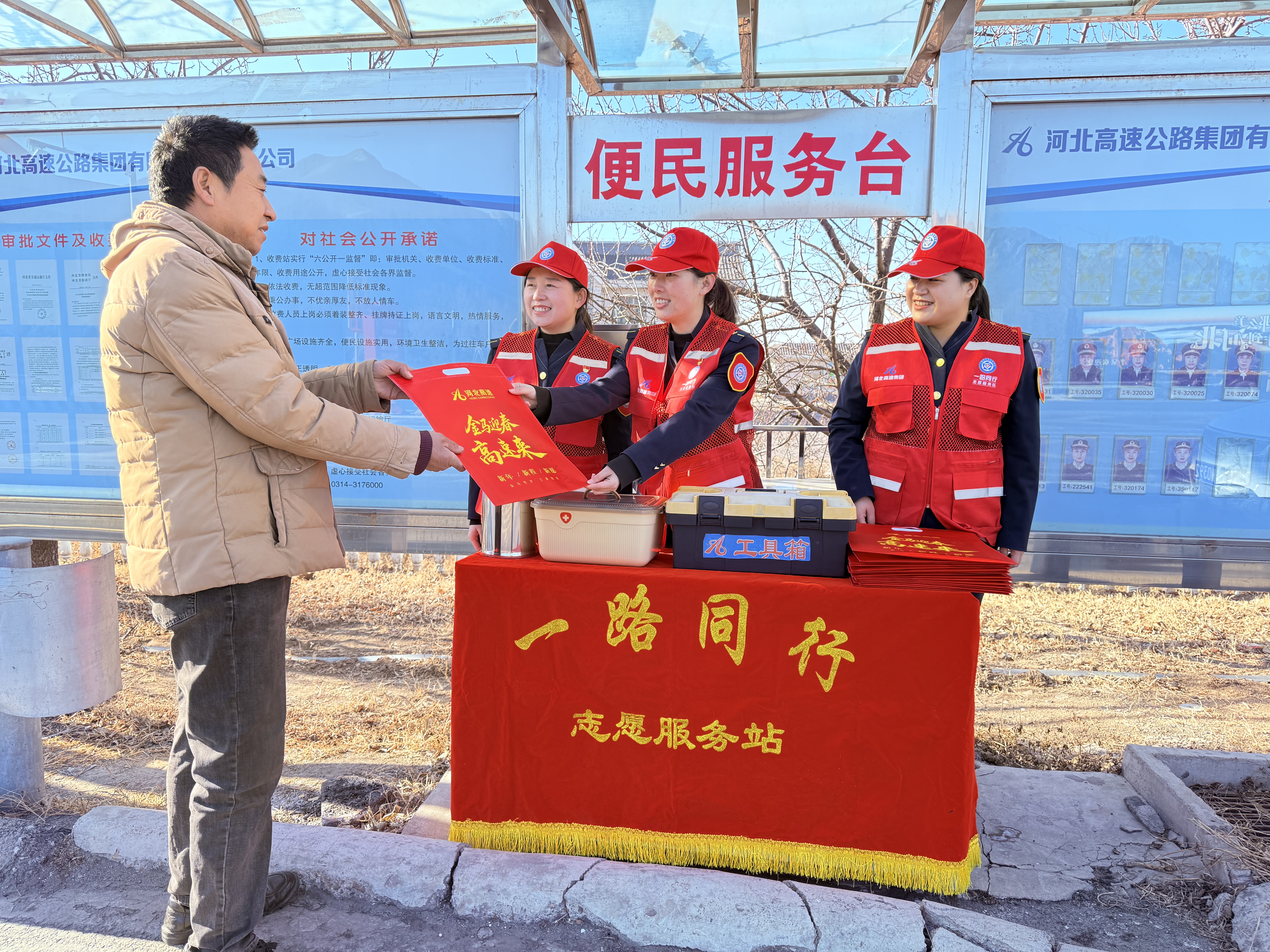 四是做优延伸服务,温情守护暖旅途。整合服务资源,联合燕赵驿行承德分公司开展春运专题直播,更新服务区车位、充电桩等核心信息,累计开展路况直播8场,累计时长28小时。同时,充分利用抖音直播间、5G信息、沿线情报板等媒介及时发布路况信息及出行服务指南,高效受理咨询电话、处置群众诉求;所属各单位“一路同行”志愿服务队依托“便民服务台”等阵地,组织开展“新春送祝福”等主题活动,发放“新春大礼包”,提供热水、应急药品等贴心服务,让广大司乘人员在旅途中感受到了浓浓的年味与温暖。