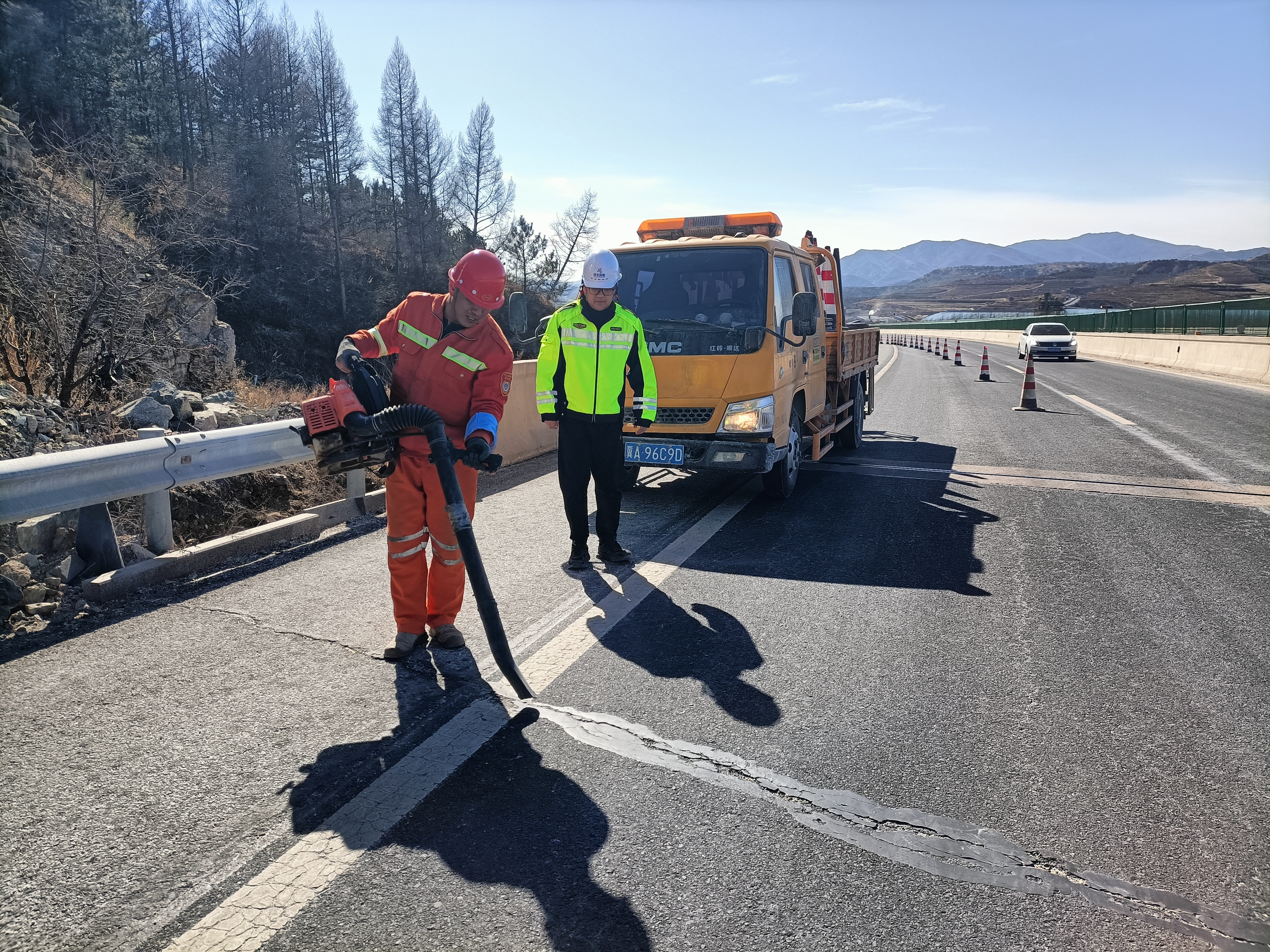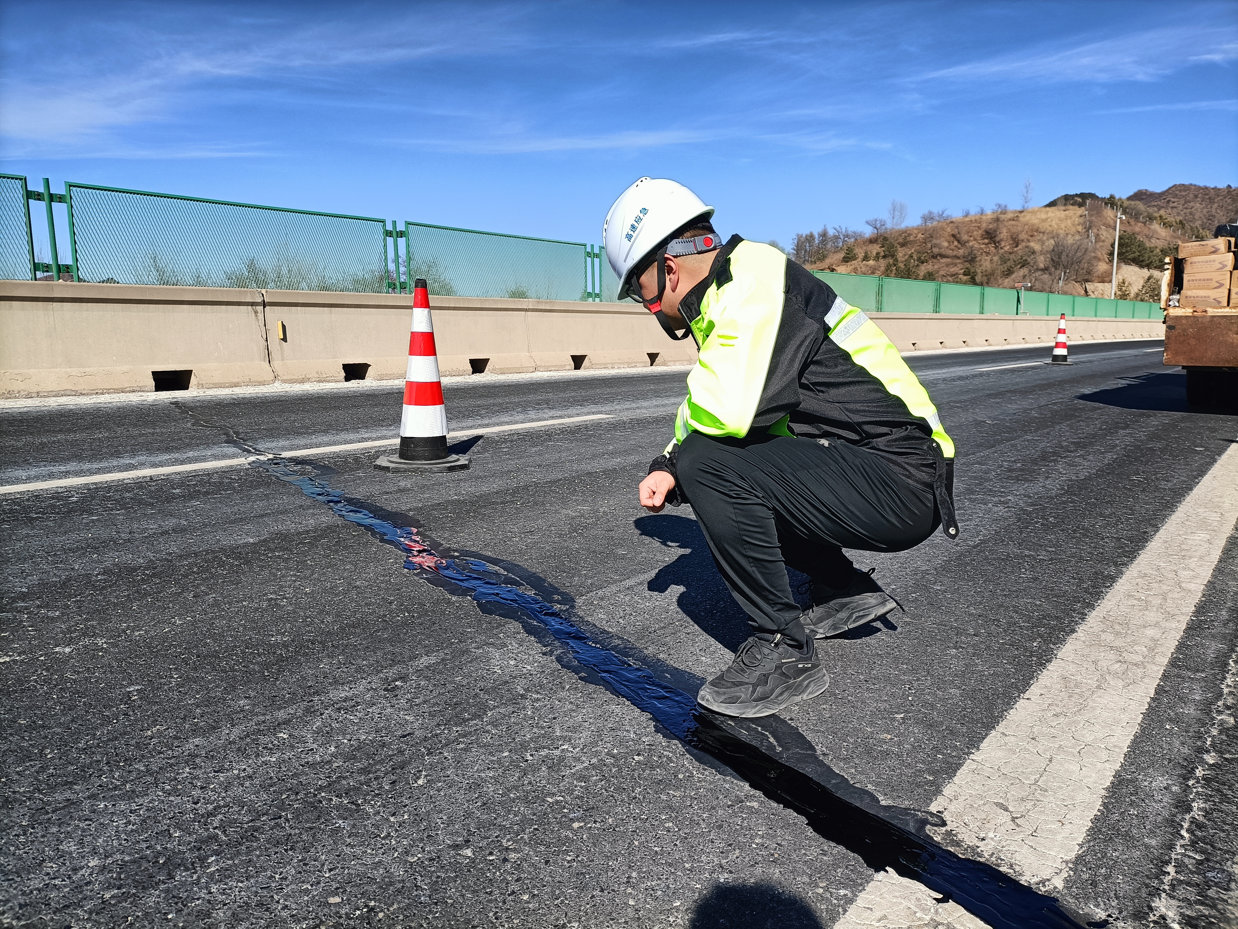 为确保路面灌缝作业规范有序,3月20日,承德分公司围场保通保畅应急大队抓住气温回升的有利时机,依据分公司《路面裂缝封闭施工要点说明》,组织开展路面灌缝作业标准段工程。