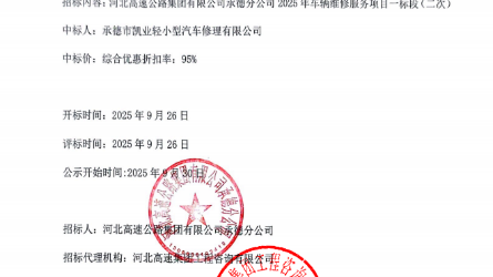 2025-10-13 14:30:33承德分公司2025年车辆维修服务项目1标中标结果公示[详细]