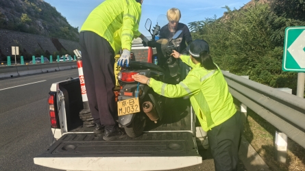 2025-10-01 08:52:3710月1日16时,安匠保通保畅应急大队巡查至承唐段承德方向K806时,发现一名男子正吃力地推着一辆摩托车前行,行车道车流急促,情况十分危险。 [详细]